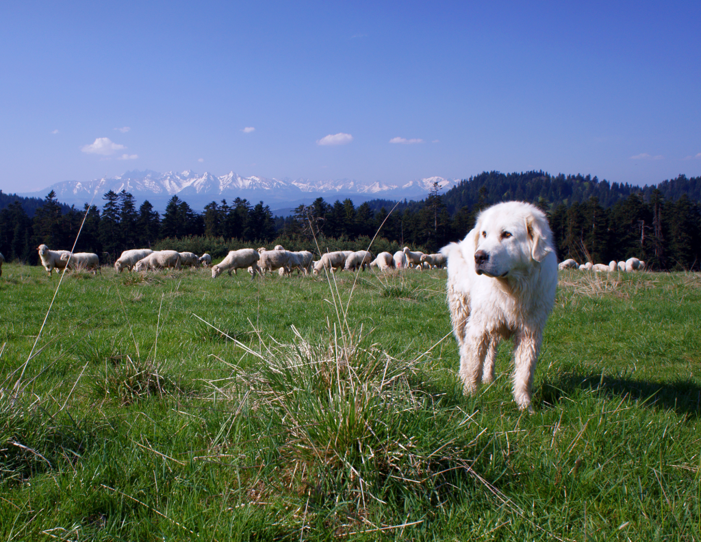 On the contrary, the guarding breeds are highly independent, self-thinkers that are not extremely motivated to obedience to authority. To understand this, one needs only recognize that many of the livestock guarding breeds were developed to remain with the flock (goat, sheep, poultry) alone, sometimes for months. The shepherd moved the livestock to lush pastures (perhaps up a mountain) for an entire summer and only brought the flock back home during winter months. There were no self- feeders for the guarding dogs. They needed to fend for themselves, yet stay close to the flock scanning for predators. They tend to be very vocal (barking frequently when on duty) and they can be active at night because that is when most threats to their charges might invade.